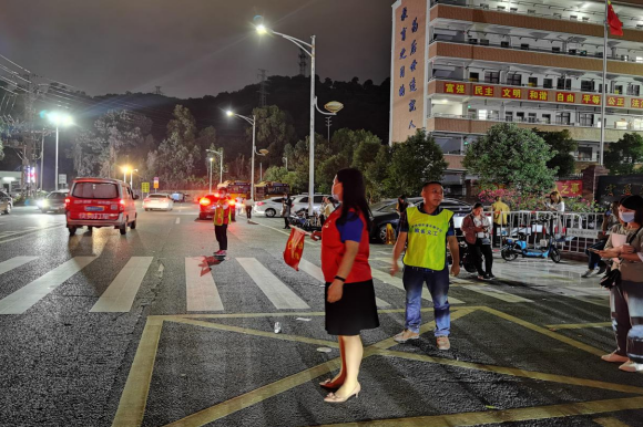 冰球突破党团志愿者分队队员现场维护交通秩序